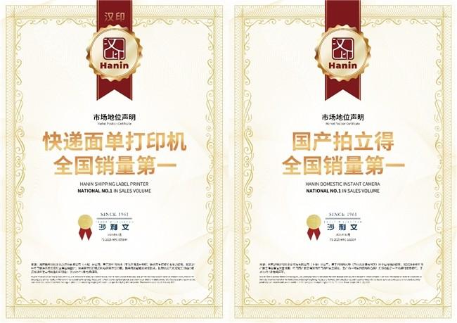 汉印同时获得“快递面单打印机全国销量第一”“国产拍立得全国销量第一”两项市场地位认证
